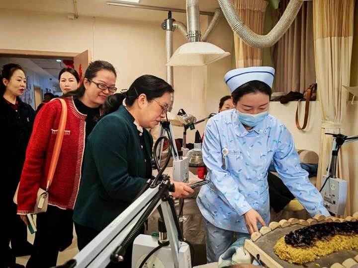 唐玲一行先后实地参观了中医院急诊科、名医工作室、针灸科、肾内科、脑病科病房等地。专家们围绕临床诊疗、科研教学、人才培养、学科建设、中医药传承与发展等内容,深入开展现场指导(如图)。