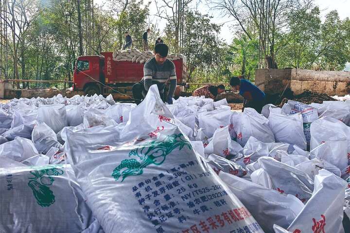 3月12日,记者在黔江区沙坝镇的一家有机肥生产企业里看到,工人们正在装袋有机肥料。封口、码垛,一袋袋有机肥陆续装车(如图),等待发往田间地头。该企业负责人介绍,企业全年可生产有机肥15000余吨,产品主要销往黔江当地及周边区县,满足粮油、果蔬等作物用肥需求。