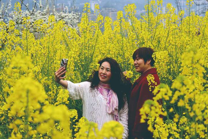 跑马山位于黔江区城南街道沙坝社区,属于城郊接合部。每年春天,粉红的桃花热烈绽放,雪白的李花、梨花素雅清新,金黄的油菜花开满田间地头,各色花卉层层叠叠、交相辉映,把山间装点得如诗如画。微风拂过,花香四溢,花瓣轻舞,与青山、村舍、步道、城区建筑相映成趣,构成一幅生机盎然的城郊春日画卷。不少游客沿着观光步道缓步前行,举着手机、相机定格美景,家庭结伴嬉戏,三五好友漫步闲谈,处处洋溢着春游的惬意与欢乐。