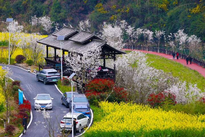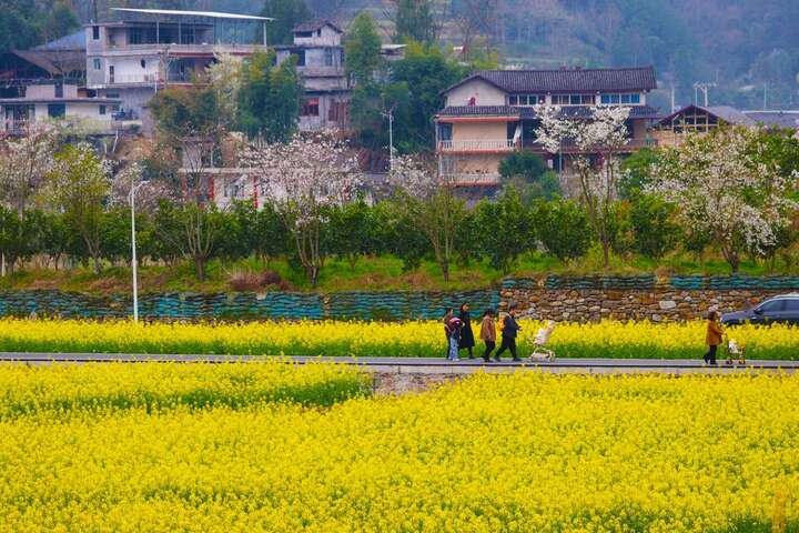 春回大地,黔江区太极镇李子村的油菜花、樱花、玉兰花等盛开,把民居、山峦、河流、公路掩映成一幅田园画卷,吸引了不少游客前往观光、游玩,感受田园美丽春光。