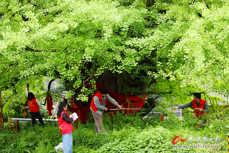 4月22日,黔江区金溪镇志愿者在千年银杏景点测量千年银杏树。当天是世界地球日,黔江区开展形式多样的主题活动,倡导保护环境,珍爱地球,以实际行动爱护环境,守护我们共同的家园。 首席记者 杨敏 摄